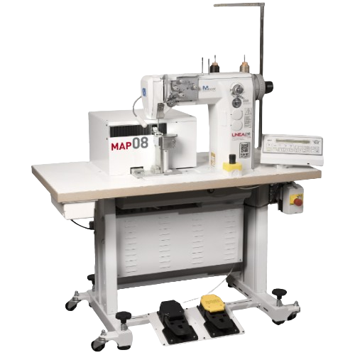 The MAP08 stitching unit is the first machine developed exclusively for loops back stitching for the stitching of little straps as well as leather material inserted in chains.
