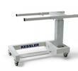 Macchina per cucire elettronica a braccio cilindrico (diam. 78 mm.), un ago, a doppio punto annodato, dotata di trasporto inferiore a griffa, trasporto a punta d’ago e trasporto superiore a piedini alternanti, dispositivo rasafilo ad azionamento elettromagnetico (FA taglio 15 mm. ca.), alzapiedino controllato da motori a passi per alzata, pressione, corsa.
